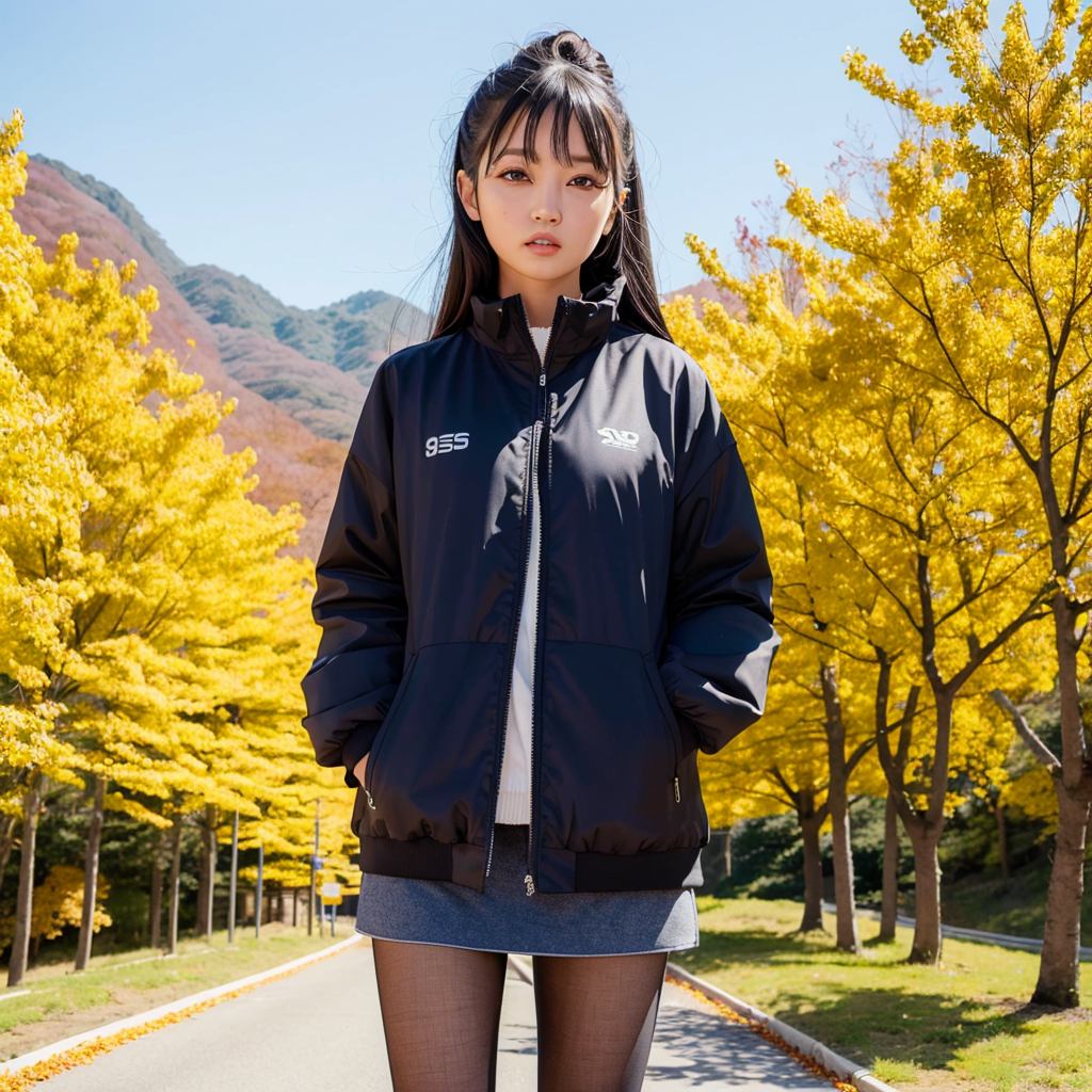 가파른 길보다 훨씬 높은 지역에 서 있는 은행나무