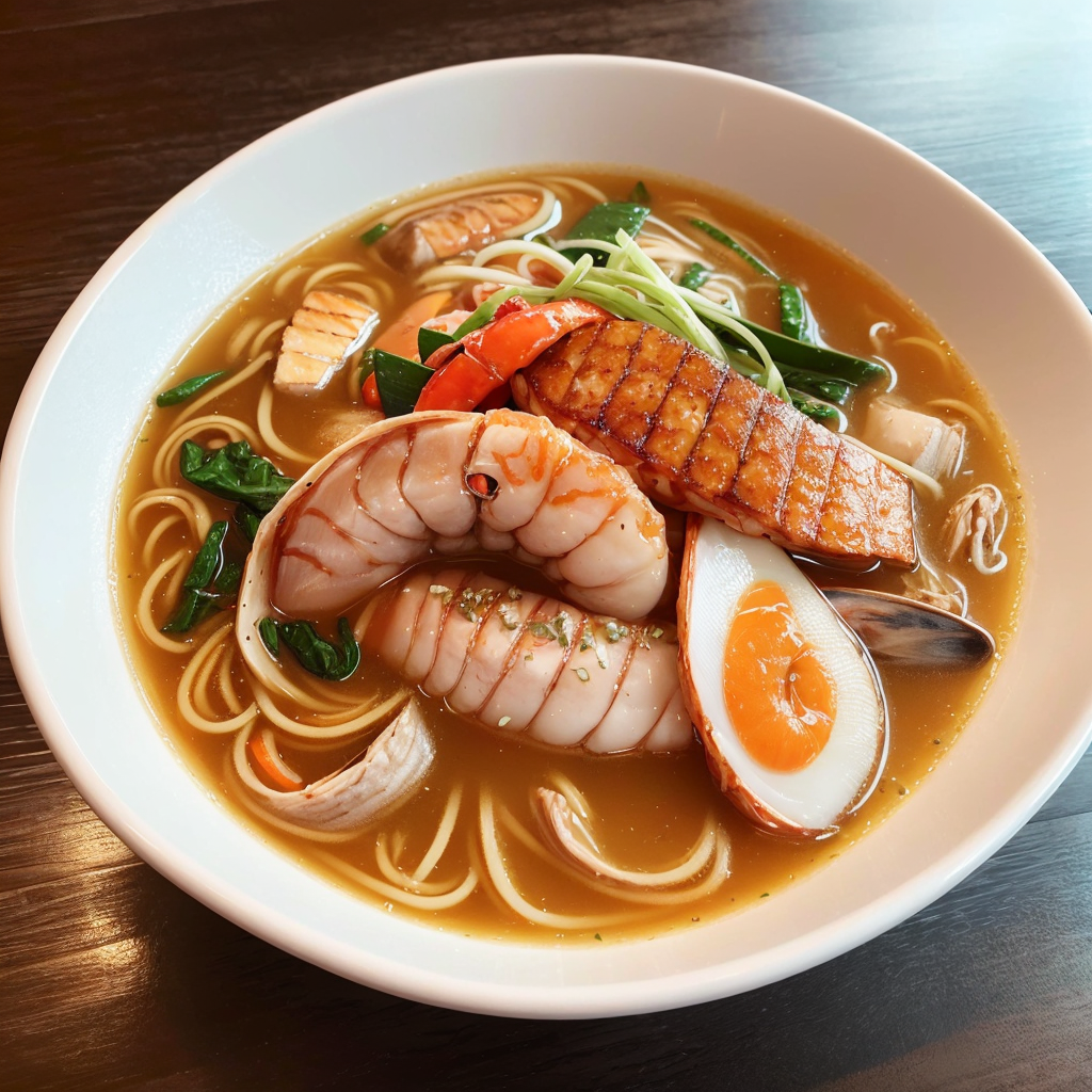 드디어 기다리고 기다리고 있던 해산물라면을 만지게 되었습니다. 컬컬한 스프의 향기로부터 각별하고 전복 등 다양한 해물이 들어 있는 플레이팅도 예술이었습니다.