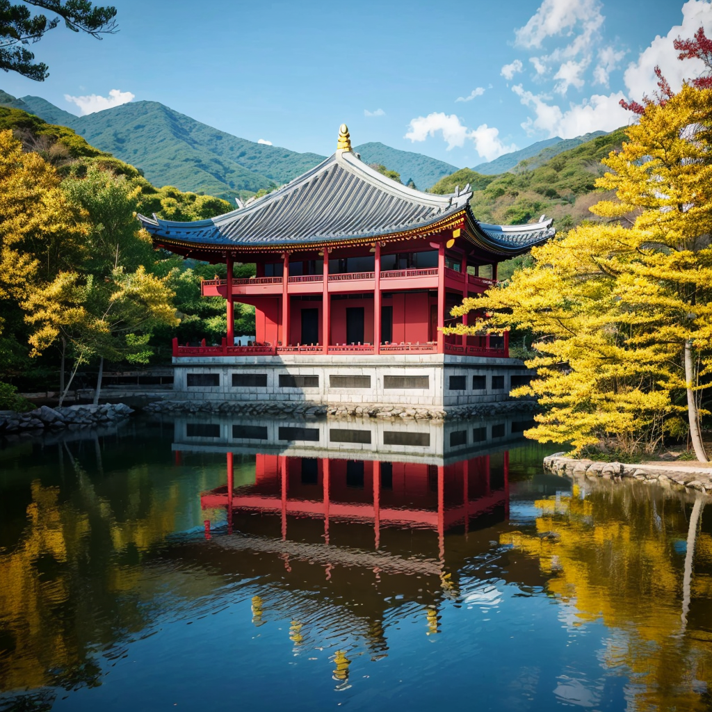 금수산의 거의 정상에 가까워 지어진 갑자기 내려가는 절벽 사이에 이런 사원을 어떻게 지었는가.